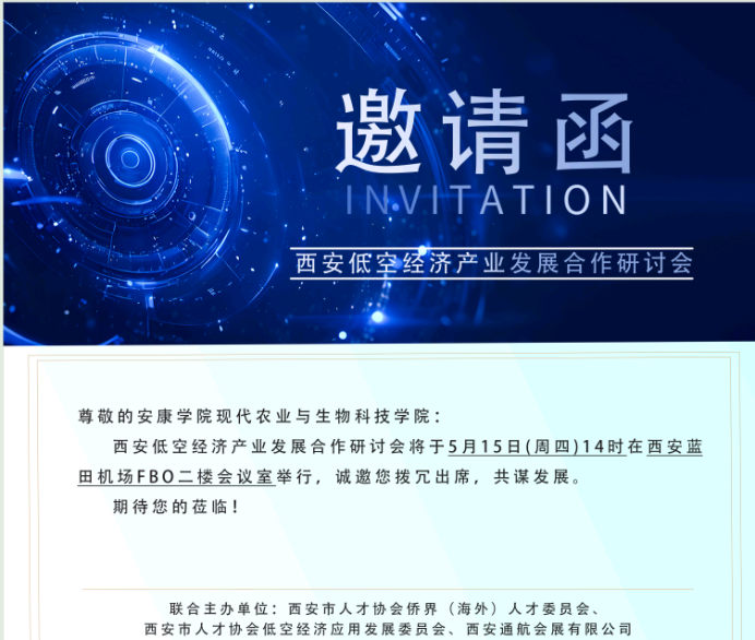 5月15日(周四)下午,在西安航空基地蓝田通用机场FBO二楼会议室,由西安市人才协会侨界(海外)人才委员会、西安市人才协会低空经济应用发展委员会、西安通航会展有限公司联合主办,召开了“西安低空经济产业发展合作研讨会”,会议由蓝田机场董事长张曦主持,澳门pg官方电子平台受邀参加了本次研讨会。
