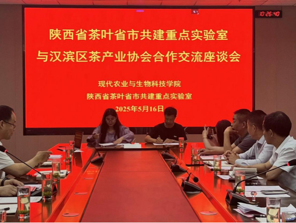 5月16日上午,汉滨区茶产业协会与陕西省茶叶省市共建重点实验室交流会在澳门pg官方电子平台江北校区进行。汉滨区农业局党委委员龚忠凯、汉滨区蚕茶果技术中心主任张鹏、陈恒研究员、茶叶站站长宋昌、汉滨区茶产业协会会长、安康市汉水韵茶业有限公司总经理王衍成及汉滨区茶企业代表20余人参加。我校校特聘研究员张百忍、副院长李川及实验室固定成员参加座谈会。会议由副院长李川主持。