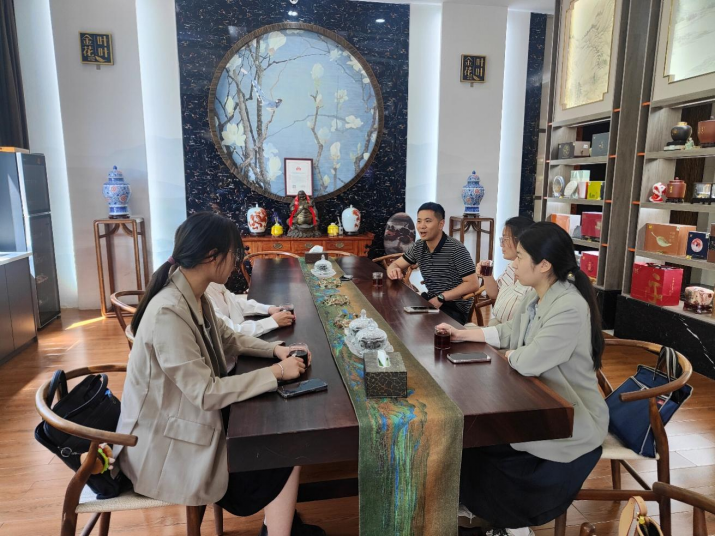 交流会上,平利一茗技术总监冉龙海详细介绍了企业近年发展成果,重点展示了新开发的系列产品,并阐述了下一步技术攻关与市场拓计划。冉总监表示,在富硒资源利用与茯茶精深加工方面,亟需高校的智力支持。程晓梅老师汇报了双方联合开展的“科学家+工程师”富硒茯茶开发项目进展。该项目整合高校科研与企业实践优势,已在富硒茯茶领域取得阶段性成果,为新产品开发奠定基础。随后,教师们围绕富硒茯茶加工工艺优化和新产品开发技术展开讨论,张娜博士也给出专业建议。