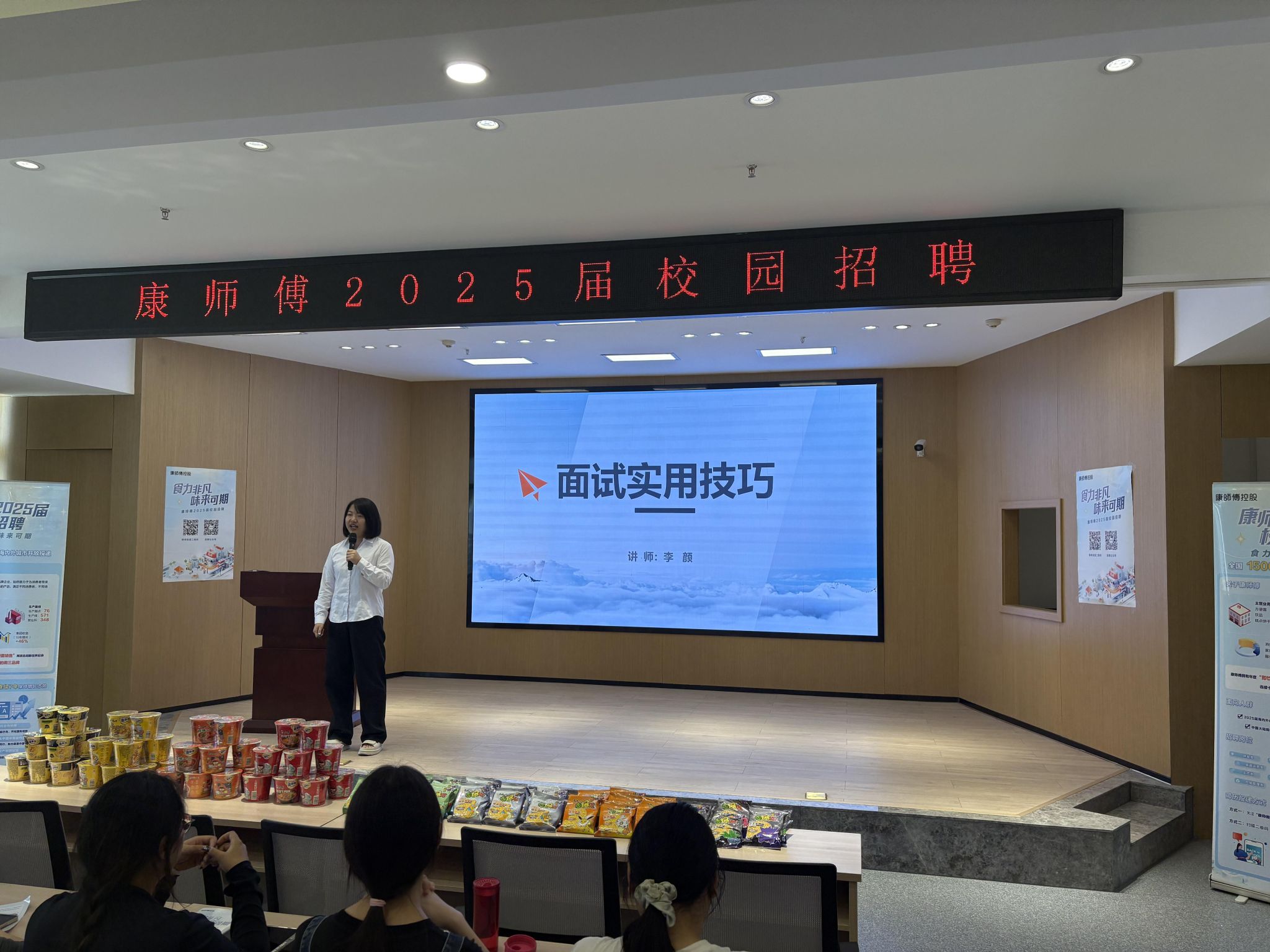 宣讲会上,西安顶益食品有限公司人力资源处李颜处长以自身丰富的人资经验和大公司用人的视角,结合理论模型和实践案例,从“企业招聘什么样的人?”、“面试是如何进行的?”、“如何成为面霸?”三个方面给学生讲授了一堂生动的《面试实用技巧》课程。课程深入浅出,内容丰富,实用性强,为学生面试提供了指南,增强了学生求职技巧和信心。
