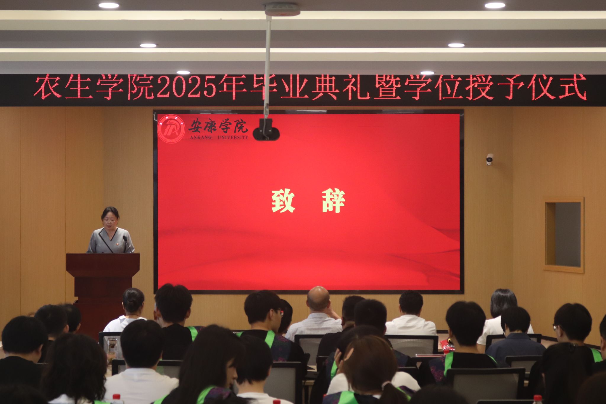 典礼在庄严的国歌声中拉开帷幕,“为农服务、科技报国”的信念在激昂旋律中愈发坚定。杨芳在致辞中寄语毕业生,鼓励大家永葆热忱,在深造或职场中绽放光彩;孙保本宣读学位授予决定;沙薇宣读优秀毕业生表彰名单;教师代表钱芝弘深情回顾与学生的点滴,送上“前路坦途,万事胜意”的祝福;毕业生代表张叶楠感恩学院培养,立志携“三农”情怀逐梦四方;在校生代表贺于家致敬毕业生,期许奋斗精神薪火相传。