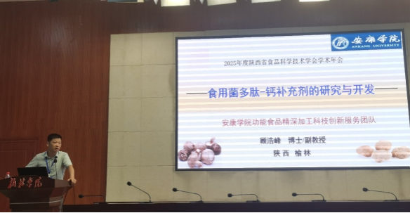 会上,顾浩峰博士作了“食用菌多肽-钙补充剂的研究与开发”的专题报告,报告就陕南特色食用菌的开发现状、食用菌小分子多肽与钙元素的结合机制进行了深入汇报。