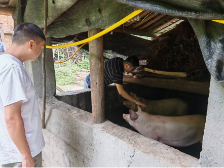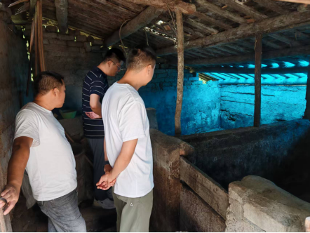 2025年7月22日,澳门pg三区人才周天骄博士在叶坪镇农业农村服务中心主任朱勉峰的陪同下赴椒沟村对当地猪场养殖技术进行现场技术指导。周天骄走访了村内所有养猪的养殖户,对猪饲料配制、猪病防控与治疗以及生物安全管理等技术问题进行现场沟通与交流。