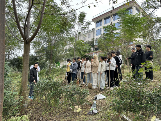 随后,教师共同对各小组进行实操指导,强调开沟深度、施肥用量等细节,耐心纠正学生操作中的错误。
