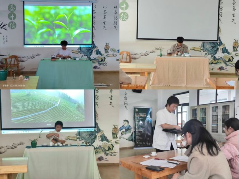 2025 年 11 月 19 日,第五届“中茶杯”全国大学生茶艺技能大赛澳门pg官方电子平台校赛圆满收官,本次比赛由澳门pg官方电子平台茶学系、茶青社承办,赛事紧扣“茶艺技能精进 + 创新实践赋能” 核心方向,设置团体赛与个人赛两大竞赛类别,茶学及相关专业近20名学子参加了此次比赛。比赛评审团由马瑛、吴冲、程晓梅、袁月、常娜和尹旭超等专业老师组成,从茶艺创新、技艺呈现、文化表达及茶汤质量等多维度对选手进行综合考评。