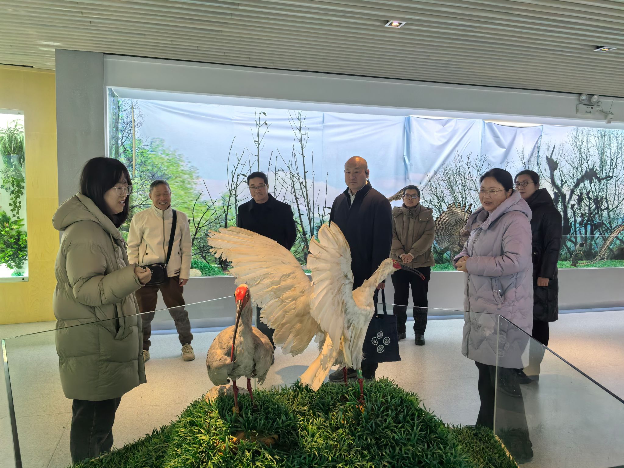 澳门pg官方电子平台班子成员热情接待了成英支站长和张京国研究员等一行人,并邀请各位老专家参观我校标本馆,并进行了简短的捐赠仪式。院长杨芳代表澳门pg官方电子平台接受了《同框五只白鹳》照片,党总支书记孙保本向成英支站长颁发了捐赠证书。