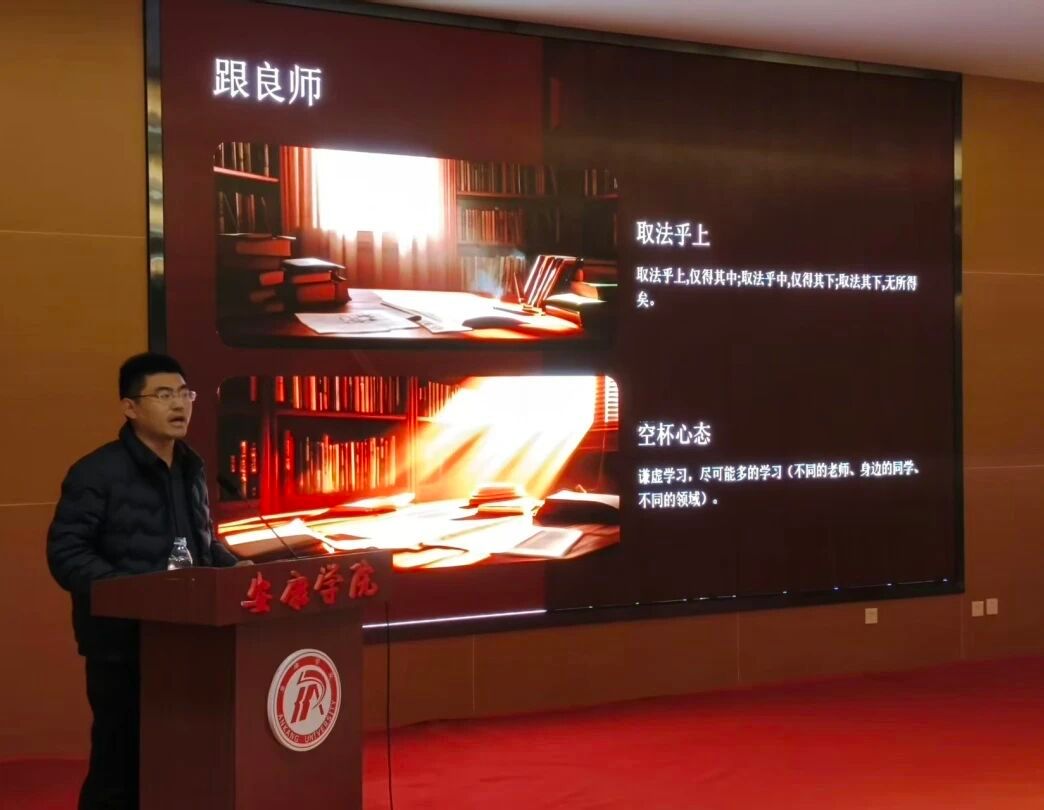 李九伟校友深情回顾了大学生涯,并结合多年基层工作感悟,为学弟学妹们倾囊相授。他围绕“大学学什么、怎么学”,勉励大家树立远大理想,打牢专业根基。针对综合素质提升,他提出“静己心、跟良师、勤思考、多实践”的箴言,鼓励学生积极参与教师课题、投身社团活动,珍惜韶华,心怀感恩,树立终身学习理念。