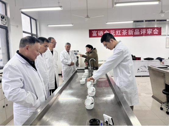 德润公司匠心独运,以安康富硒茶夏秋红茶为原料,运用冠突散囊菌纯菌生物技术进行发酵,成功打造出具有独特茯茶风味的“金花红茶”。评审组严格遵循国家标准《GB/T 23776 - 2018 茶叶感官审评方法》,对产品的外形、汤色、香气、滋味、叶底等感官品质进行了细致入微的评价,同时严谨核查了硒含量等理化检测数据,深入论证了工艺的稳定性与技术的创新性,并对产品的健康价值和市场潜力进行了全面评估。最终,形成了专业且权威的《“富硒金花红茶”新产品专家评审意见》。