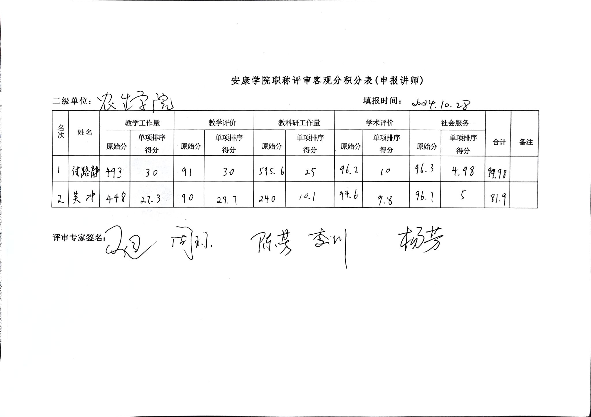 现将澳门pg官方电子平台2024年讲师职称评审客观分积分表予以公示,公示期2024年10月27日-29日,公示期间如有异议,请向澳门pg官方电子平台专业技术职务评审工作组反映。