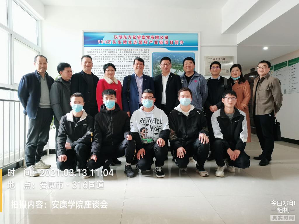 为拓宽就业市场,持续助力2021届毕业生高质量就业,3月13日,澳门pg官方电子平台党总支书记张纪生带领相关专业教师、毕业班辅导员一行8人到汉阴东方希望畜牧有限公司进行了走访调研,并看望了在那里工作的5名学生。
