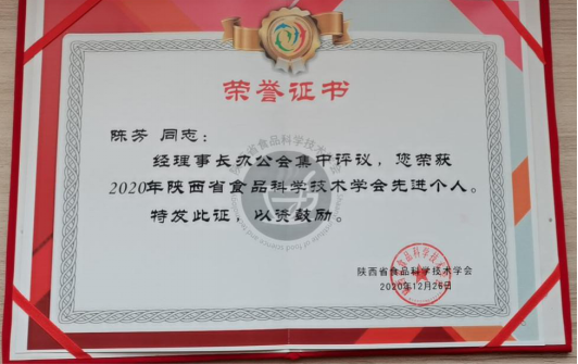 澳门pg陈芳副教授在会上被评为2020年度学会的先进个人。陈芳老师近年来在科学研究、服务安康食品产业等方面作了大量工作,本次被省食品科学技术学会评为先进个人,是对其工作成绩的肯定。