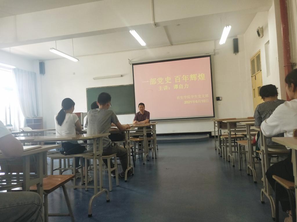 为进一步推动党史学习教育走深走实,增强大学生党员爱党爱国情怀,做到常怀忧党之心、为党之责、强党之志,不断增强守初心、担使命的思想自觉和行动自觉。610日,学生党支部书记谭自力以百年峥嵘岁月·百年铸就辉煌为题,为全体学生党员上了一堂生动的党史学习教育课。