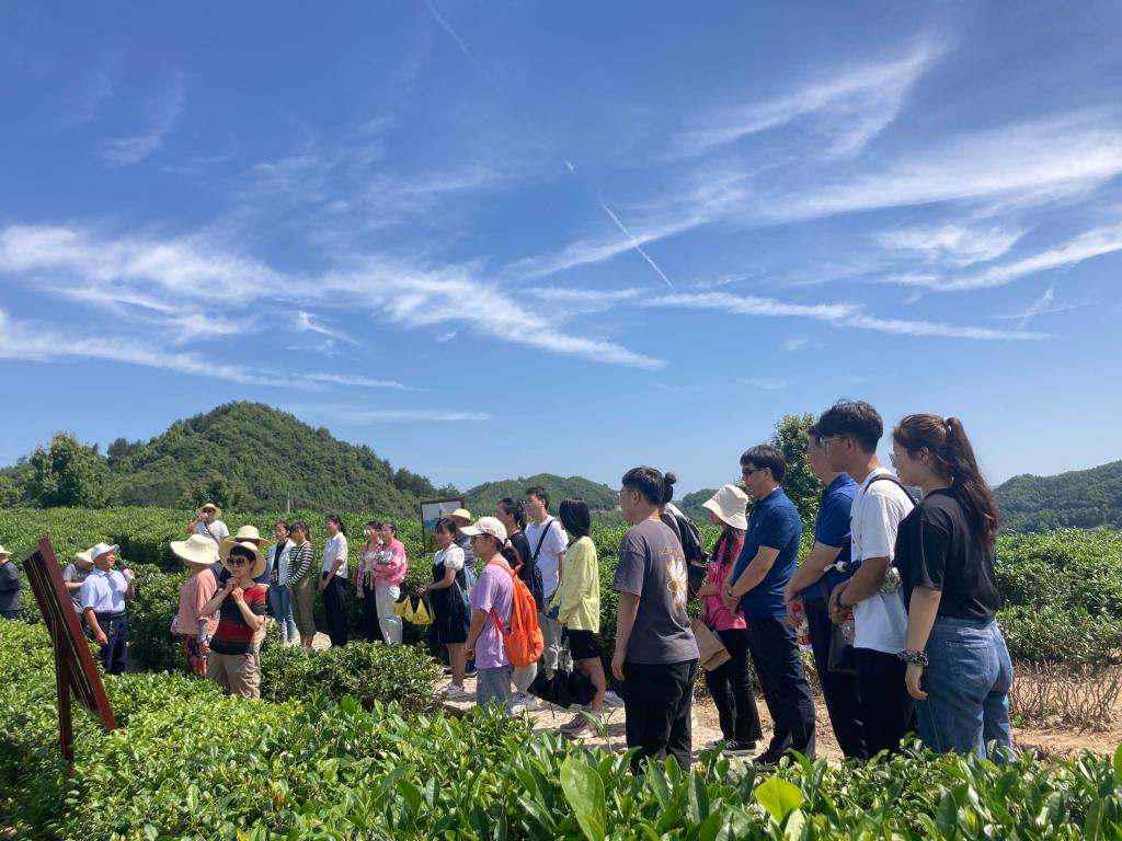 在蒋家坪凤凰茶业现代示范园区,全体师生党员沿着习近平总书记来蒋家坪村茶山时走过的茶山路,认真聆听了蒋家坪村支部书记罗显平生动讲述习近平总书记在茶园考察调研时的精彩语录和与茶农亲切交流的情景,深刻感悟习近平总书记的为民、亲民、爱民的博大情怀。
