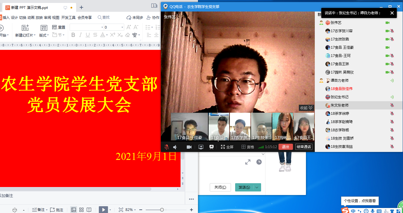 9月1日晚,澳门pg官方电子平台学生党支部采用线上视频方式召开学生党员大会,讨论贺川容等6名预备党员转正转正事宜。大会由学生党支部书记谭自力主持,党总支书记张纪生、党总支副书记朱文东、学生党支部全体党员参会。