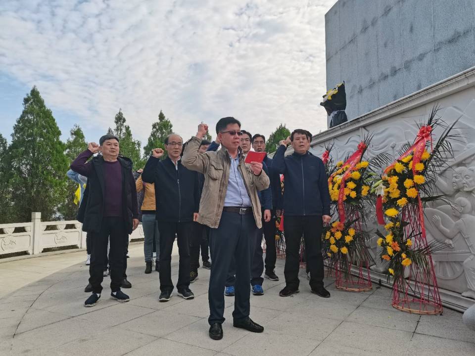 纪念碑前,党总支书记张纪生领学了《习近平总书记在纪念中国人民志愿军抗美援朝出国作战70周年大会上的重要讲话》。他希望全体师生铭记历史,要以长远的发展的思维和眼光来审视历史、观察现实、思考未来;以英烈为楷模,增强“四个意识”,坚定“四个自信”,坚决做到“两个维护”,珍惜当下,以实际行动为实现中华民族的伟大复兴而努力奋斗。