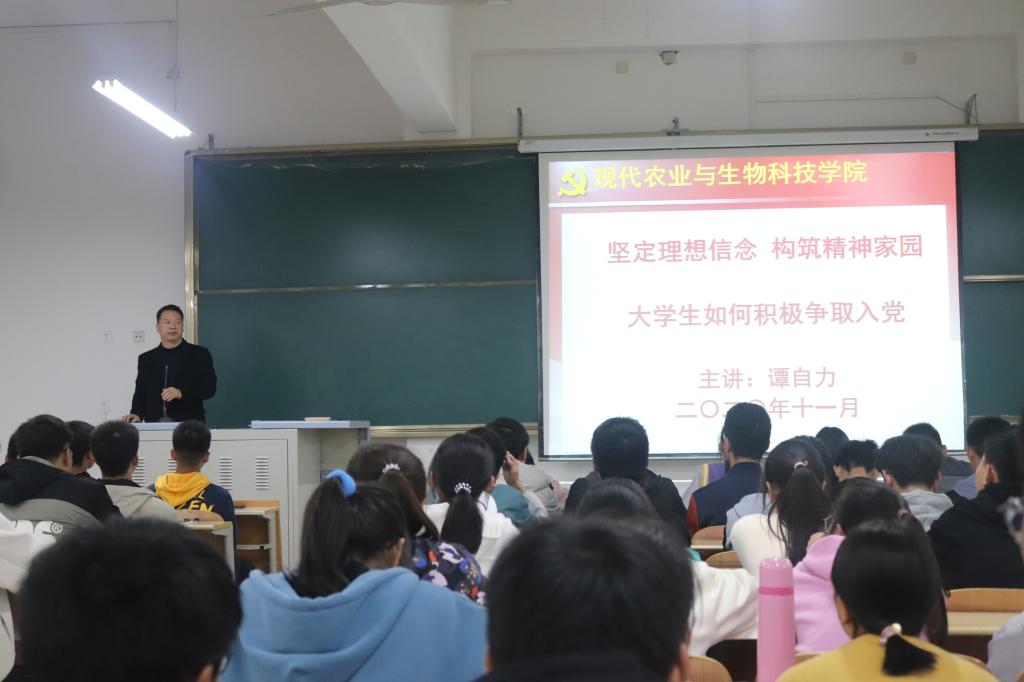 为增进新生对党的基本知识的理解和认识,引导新生端正入党动机,了解入党流程,规范撰写入党申请书,11月1日晚,澳门pg官方电子平台学生党支部在江北校区1203教室举办了2020级新生入党知识讲座,学生党支部书记谭自力担任主讲。