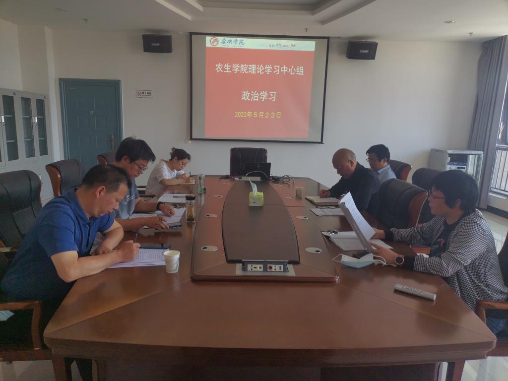5月23日,农生学院在逸夫科技楼会议室召开落实巡视整改暨理论学习中心组学习会,党总支书记孙保本主持会议。