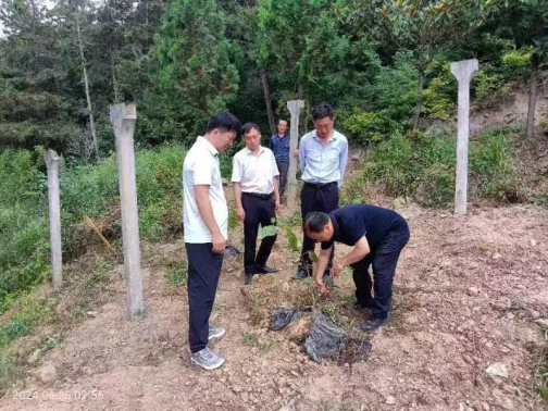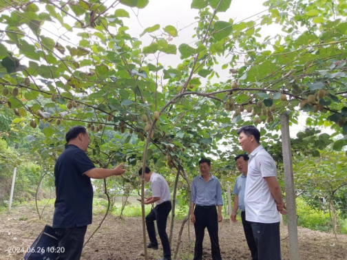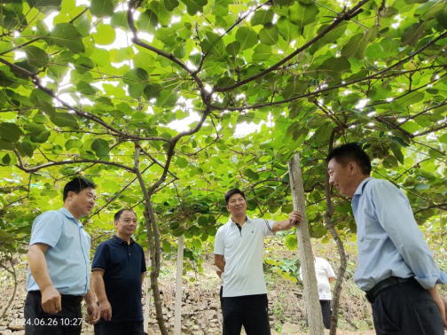 6月26日,在坝河镇镇党委书记鲁波、副镇长李振界、镇林业站长柯刚陪同下,澳门pg教师沈大刚副教授到坝河镇寺姑村指导猕猴桃树夏季管理和病虫害管理技术。